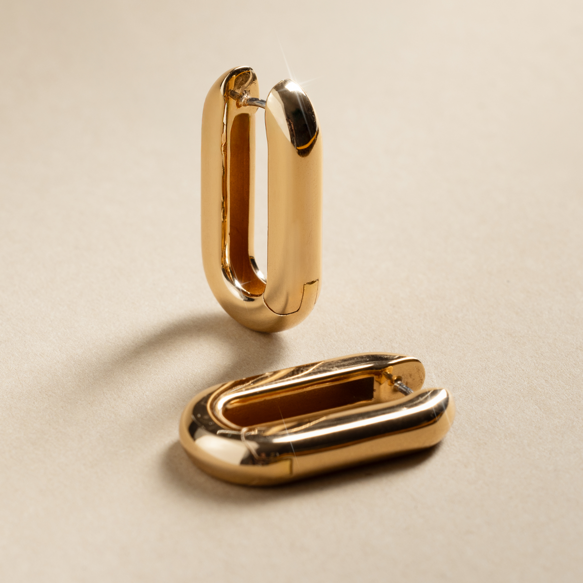 Shape meets shine. These structured hoops feature a modern paperclip silhouette, giving your ear stack an angular edge with a whole lot of personality.