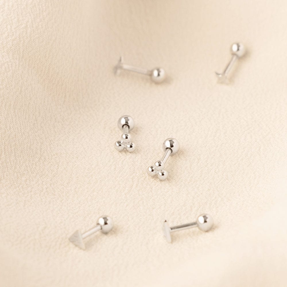 Reimagine your routine with a pair of earrings that show off your adventurous side. The Trinity features 3 small beads for a versatile, understated look. Each lightweight stud has a shorter post length and a screw-on ball-style back for comfortable, long-term wear. Exchange the snags and pokes of traditional earring backs for a style that is cartilage and lobe friendly, headphone ready, and nap approved.