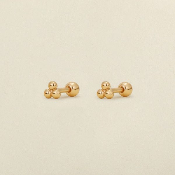 Reimagine your routine with a pair of earrings that show off your adventurous side. The Trinity features 3 small beads for a versatile, understated look. Each lightweight stud has a shorter post length and a screw-on ball-style back for comfortable, long-term wear. Exchange the snags and pokes of traditional earring backs for a style that is cartilage and lobe friendly, headphone ready, and nap approved.
