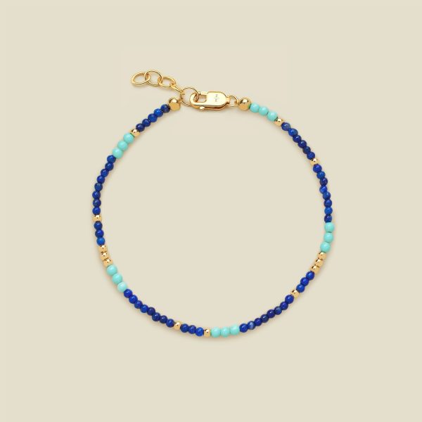 A delicate strand of turquoise and lapis beads, representing calm, connection, and a touch of intuition. These true blue hues are versatile and easy to wear- layer it up or let it shine solo.